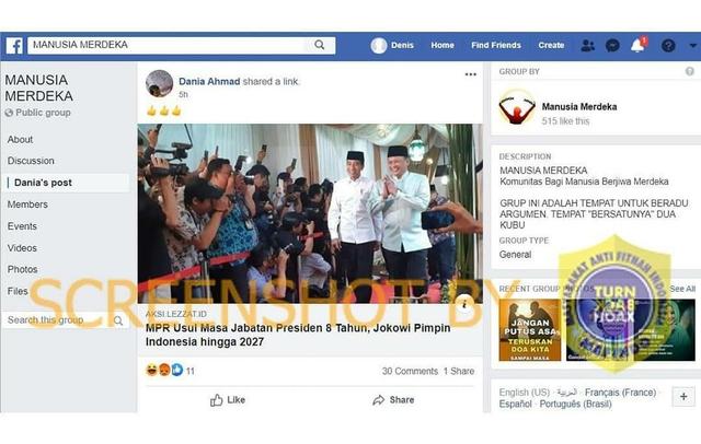 Klaim tersebut datang dari pemilik akun Facebook Dania Ahmad yang mengunggah tautan artikel berjudul “MPR Usul Masa Jabatan Presiden 8