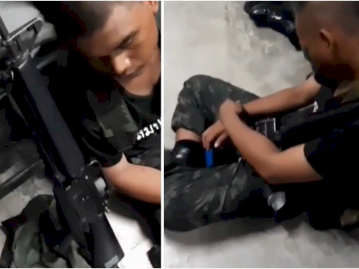 Dalam video yang disimak Indozone, tentara-tentara muda tersebut sedang tertidur pulas dengan posisi duduk di dalam suatu ruangan. Masing-masing dari mereka tampak mendekap senjata laras panjang mereka.